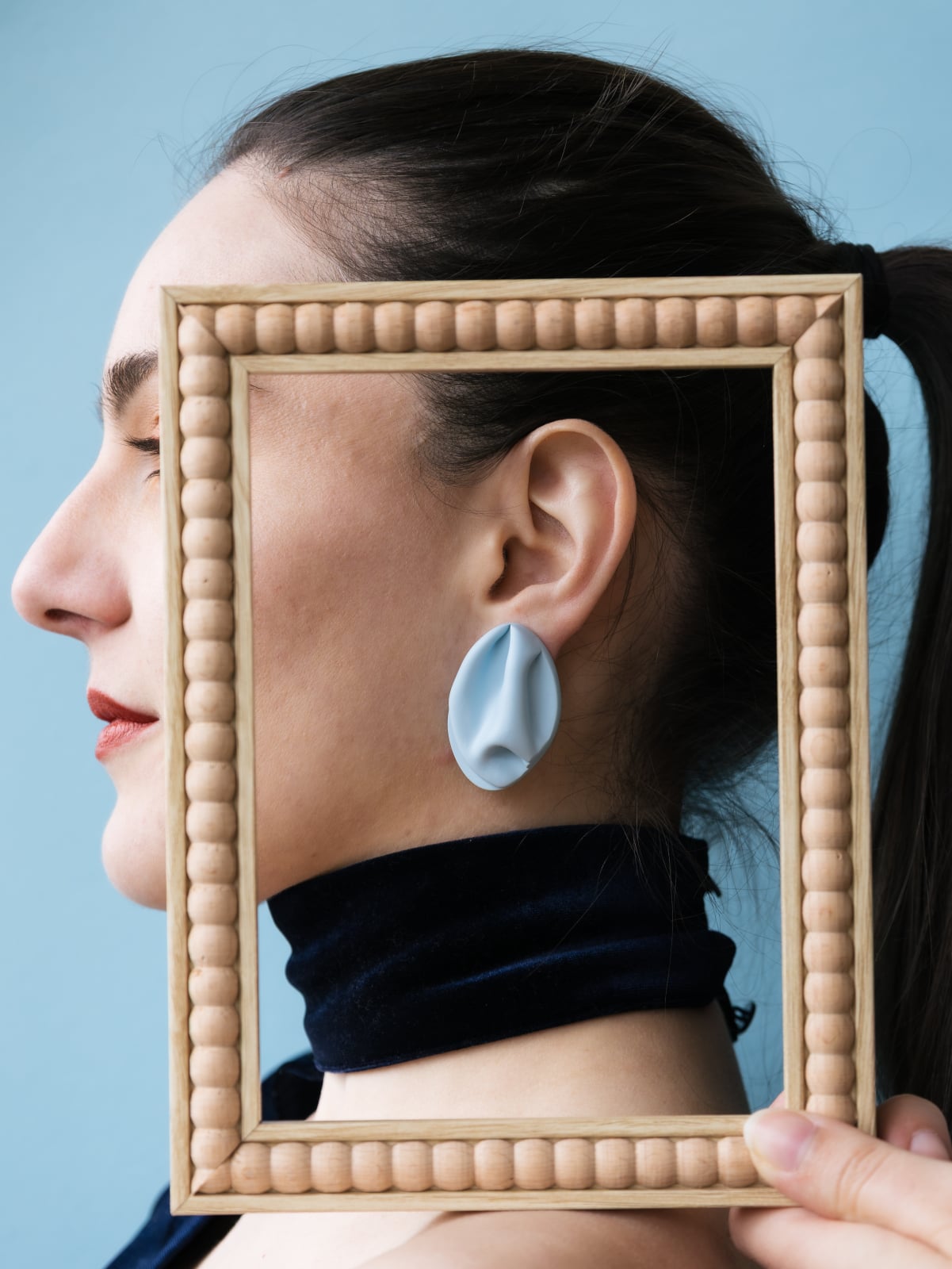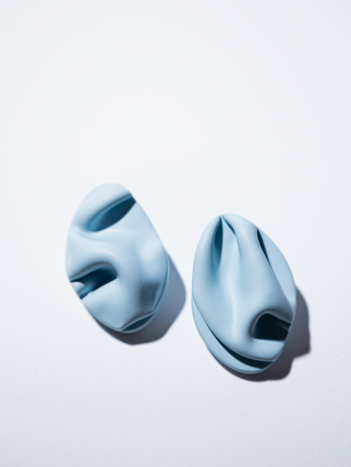 Cerceii FOLDA sunt modelați manual în lut polimeric, inspirați de pliurile textile și formele fluide ale materialelor în mișcare. Cu un design modern și organic, fiecare pereche este unică, fiecare pliu fiind creat intuitiv, fără matrițe sau sabloane.