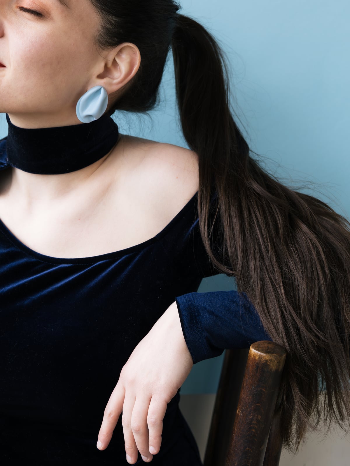 FOLDA sunt cercei statement cu un design fluid, inspirați de pliurile textile, modelați manual din lut polimeric – design mininalist și expresiv.