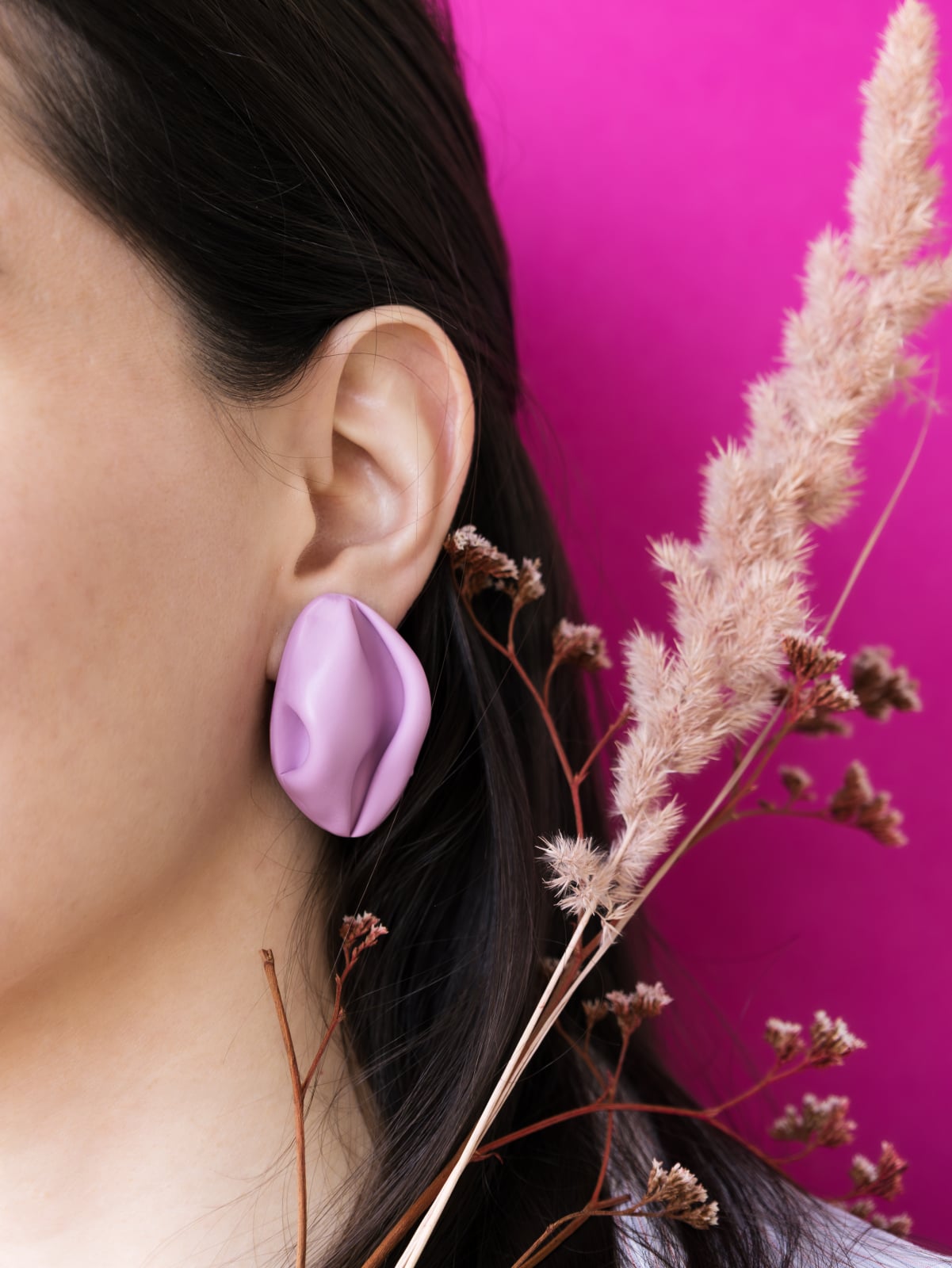 FOLDA sunt cercei statement cu un design fluid, inspirați de pliurile textile, modelați manual din lut polimeric – design mininalist și expresiv.