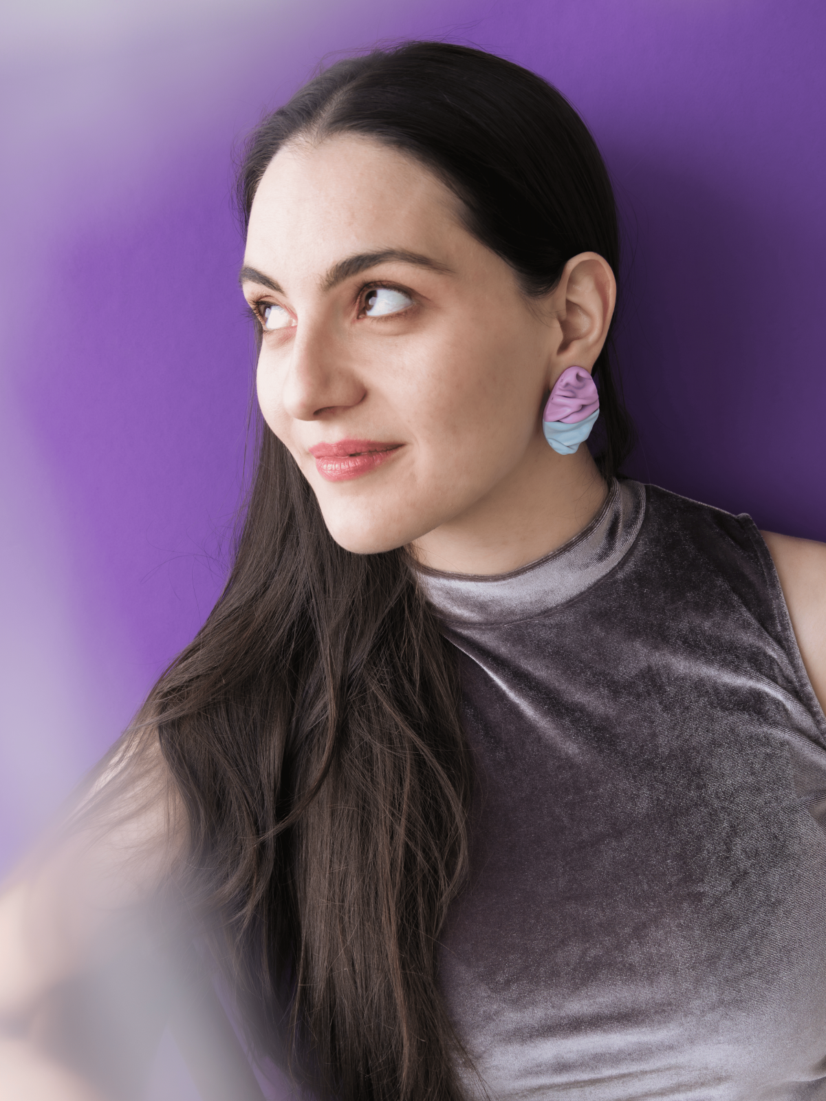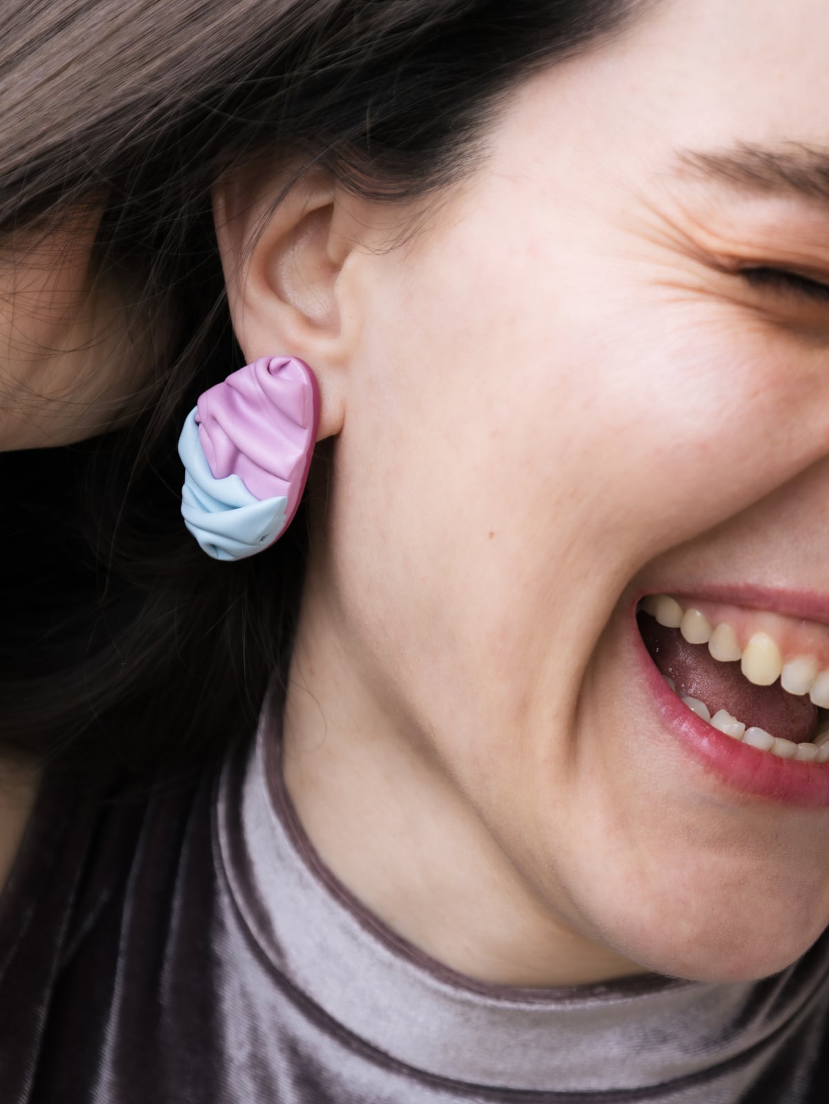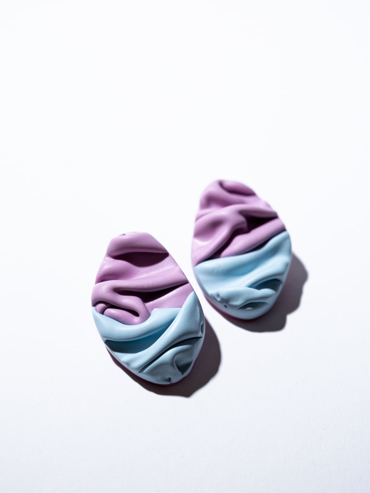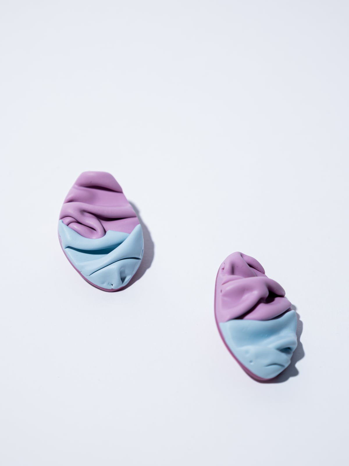 Cerceii FOLDA sunt modelați manual în lut polimeric, inspirați de pliurile textile și formele fluide ale materialelor în mișcare. Cu un design modern și organic, fiecare pereche este unică, fiecare pliu fiind creat intuitiv, fără matrițe sau sabloane.