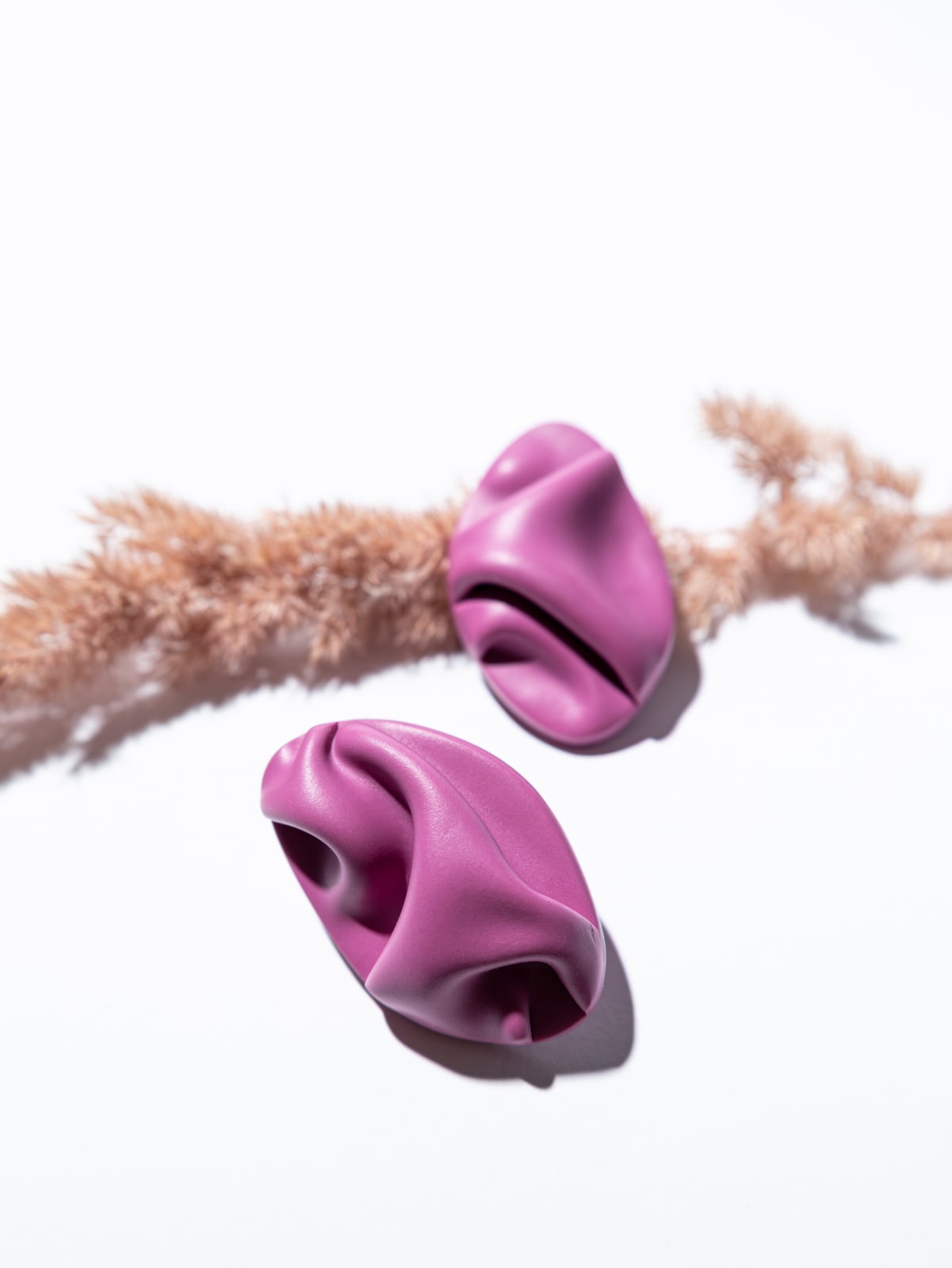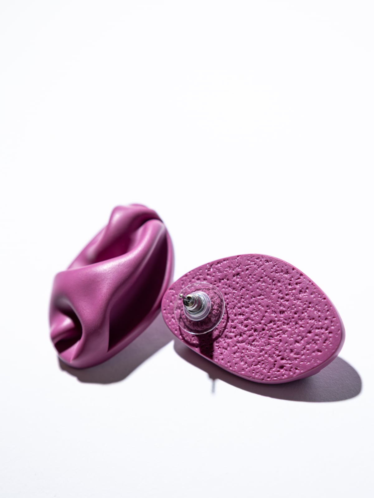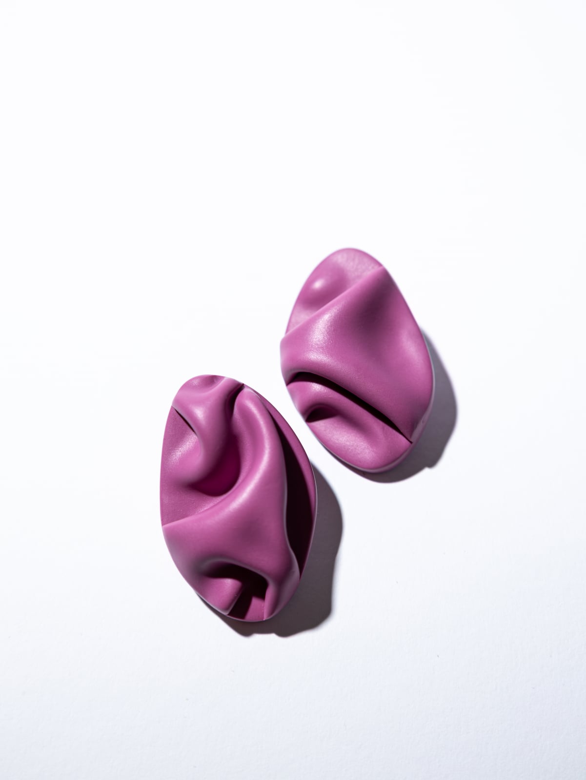 Cerceii FOLDA sunt modelați manual în lut polimeric, inspirați de pliurile textile și formele fluide ale materialelor în mișcare. Cu un design modern și organic, fiecare pereche este unică, fiecare pliu fiind creat intuitiv, fără matrițe sau șabloane.