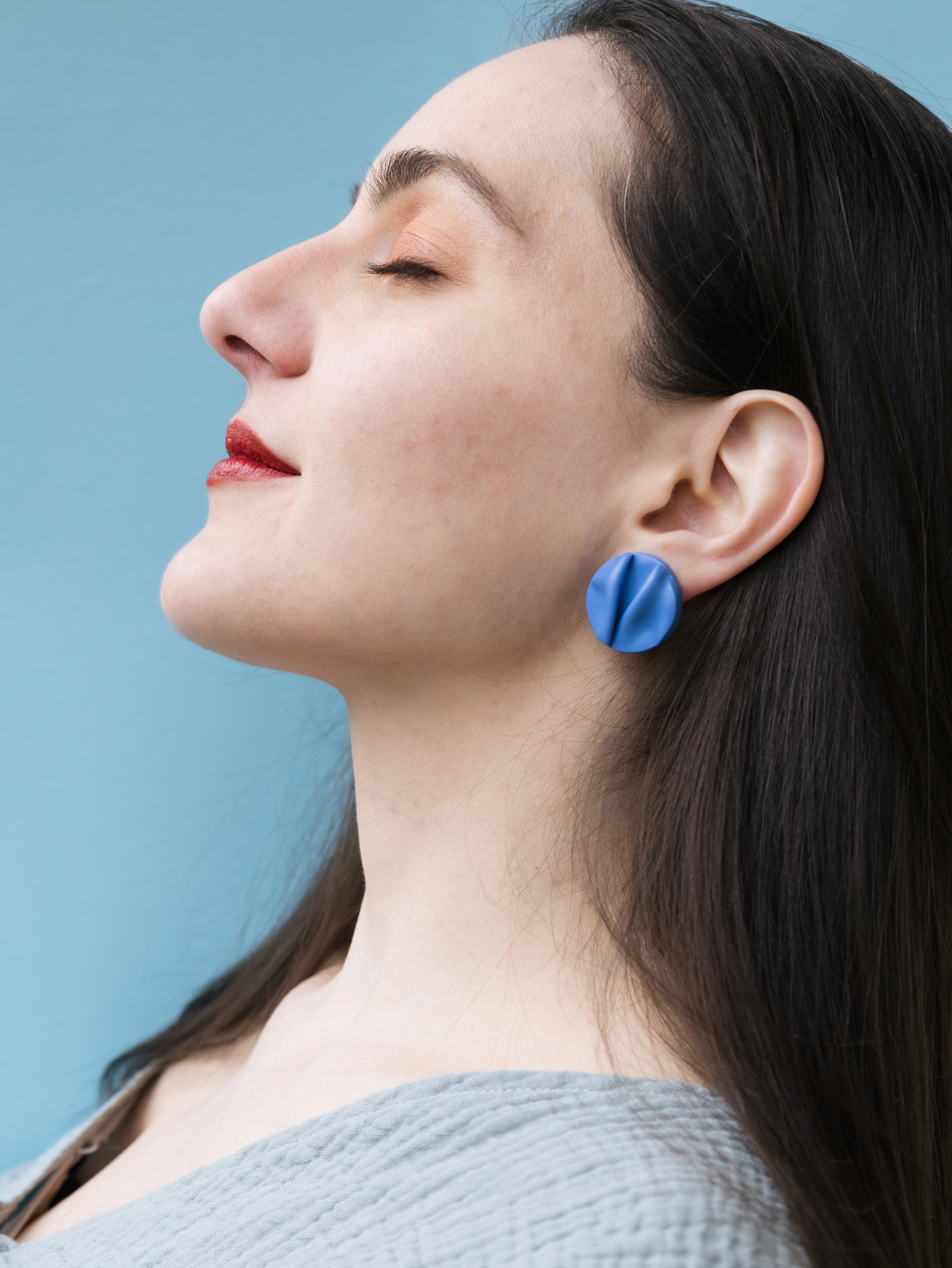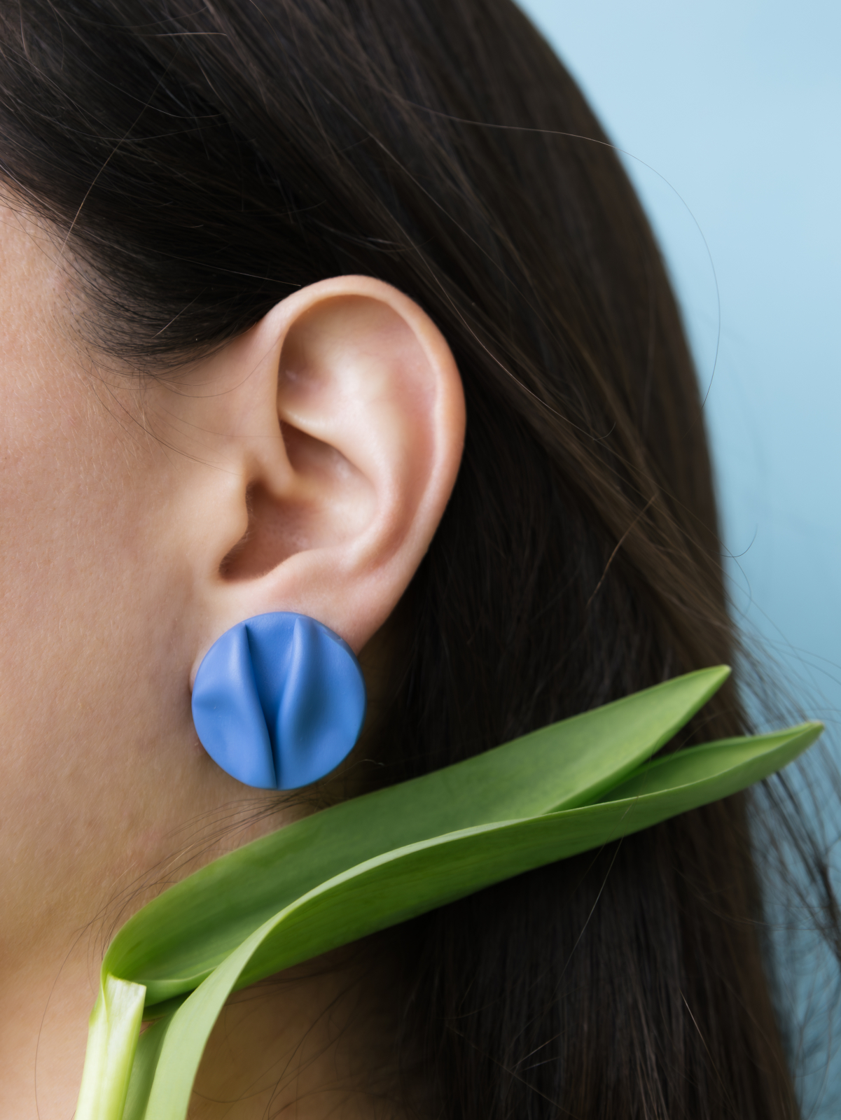 ONDA sunt cercei statement cu un design fluid, inspirați de pliurile textile, modelați manual din lut polimeric - perfecți pentru un look subtil, dar rafinat.
