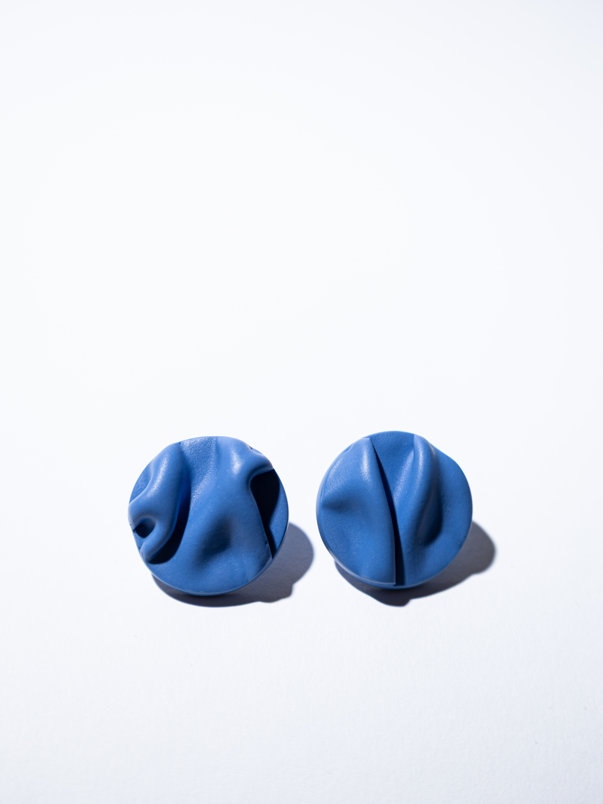 Cerceii ONDA într-o formă rotundă și compactă, sunt modelați manual în lut polimeric, inspirați de pliurile textile și formele fluide ale materialelor în mișcare. Dimensiunile mai mici sunt perfecte pentru cele care preferă un look subtil și rafinat. Fiecare pereche este unică, fiecare pliu fiind creat intuitiv, fără matrițe sau sabloane.