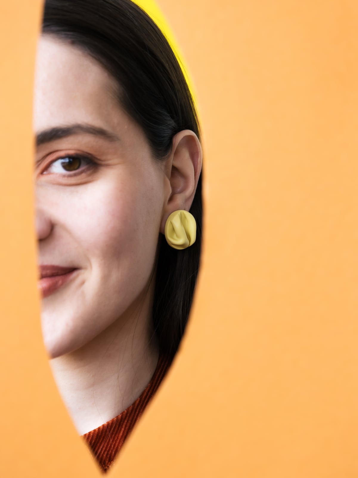 ONDA sunt cercei statement cu un design fluid, inspirați de pliurile textile, modelați manual din lut polimeric - perfecți pentru un look subtil, dar rafinat.