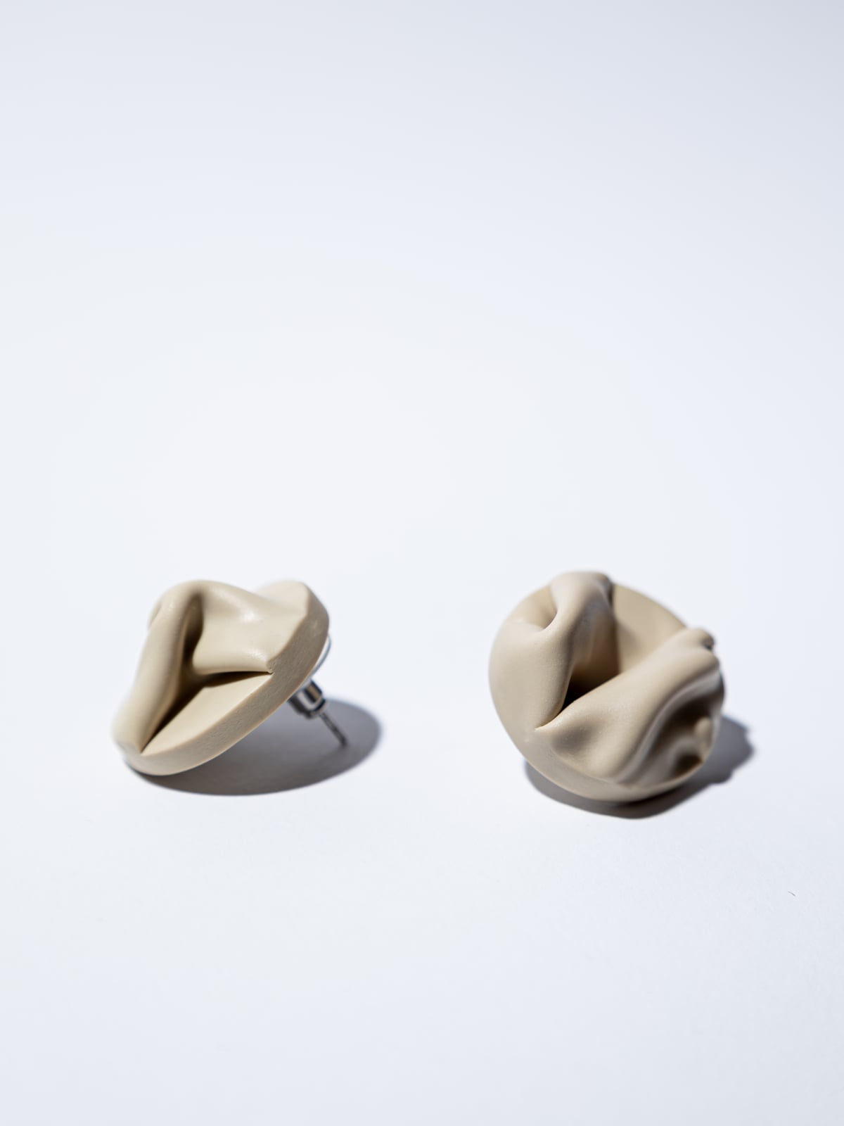 Cerceii ONDA într-o formă rotundă și compactă, sunt modelați manual în lut polimeric, inspirați de pliurile textile și formele fluide ale materialelor în mișcare. Dimensiunile mai mici sunt perfecte pentru cele care preferă un look subtil și rafinat. Fiecare pereche este unică, fiecare pliu fiind creat intuitiv, fără matrițe sau sabloane.