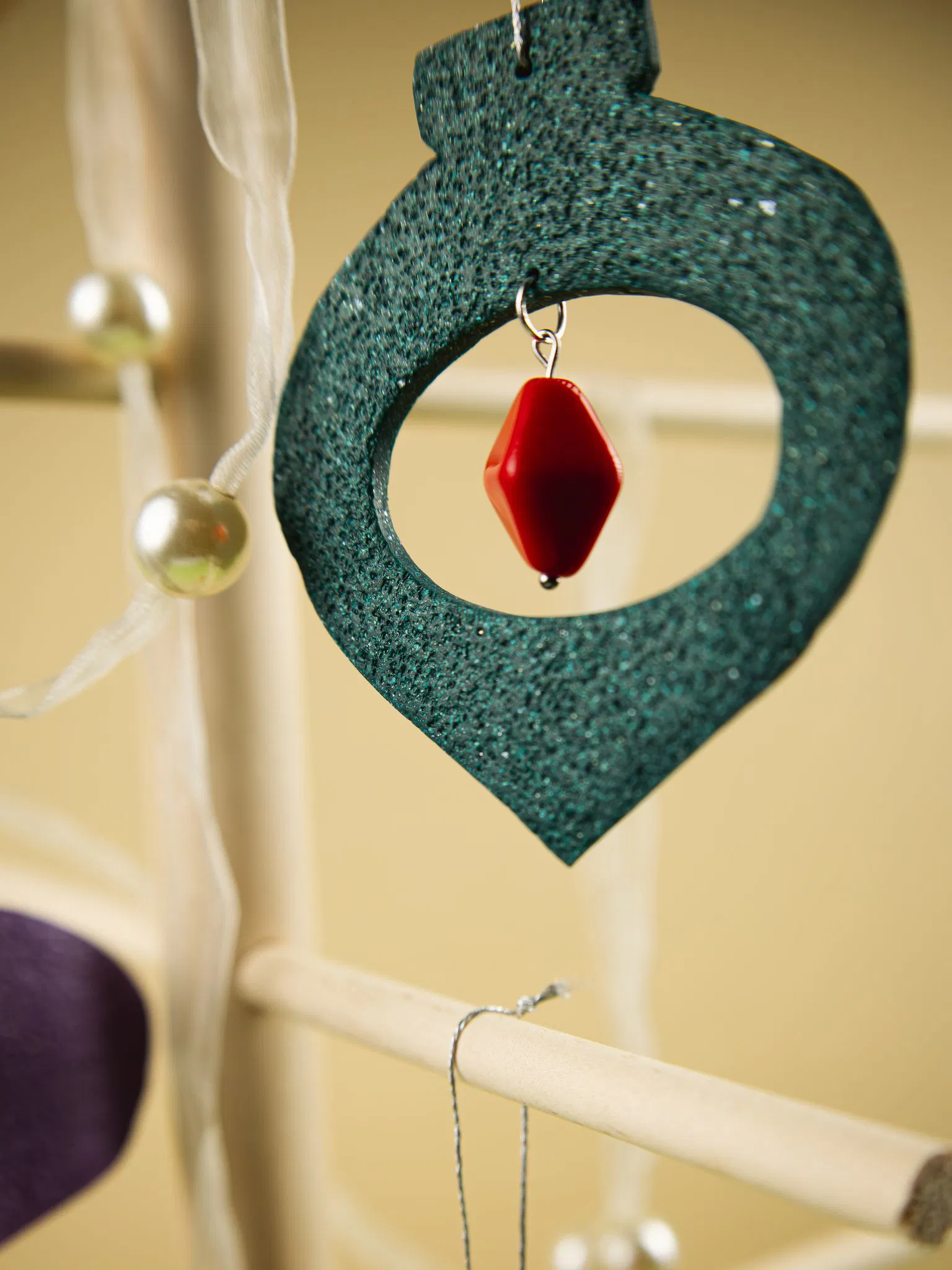 Setul de 3 decorațiuni de Crăciun în culorile clasice ale sărbătorilor roșu, verde și accente de mov elegant aduce un echilibru perfect între tradiție și originalitate. Fiecare decor este îmbogățit cu mărgele, oferind un plus de eleganță și o strălucire subtilă care luminează orice colț al casei tale.